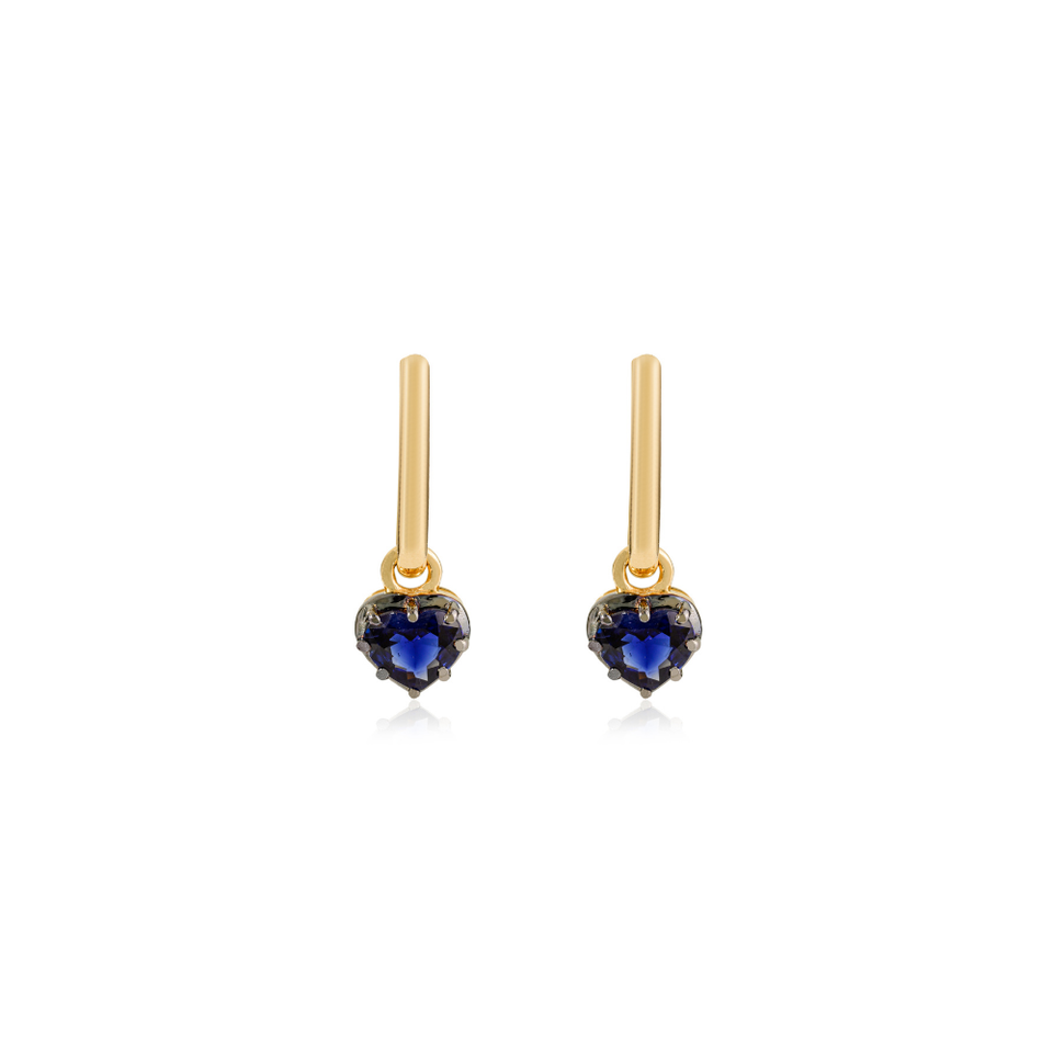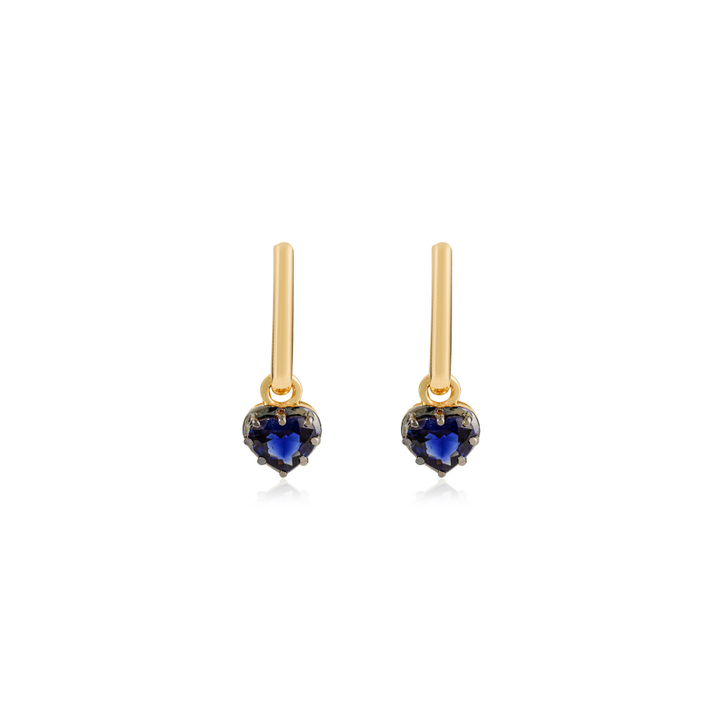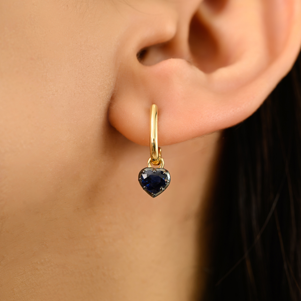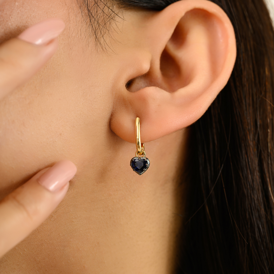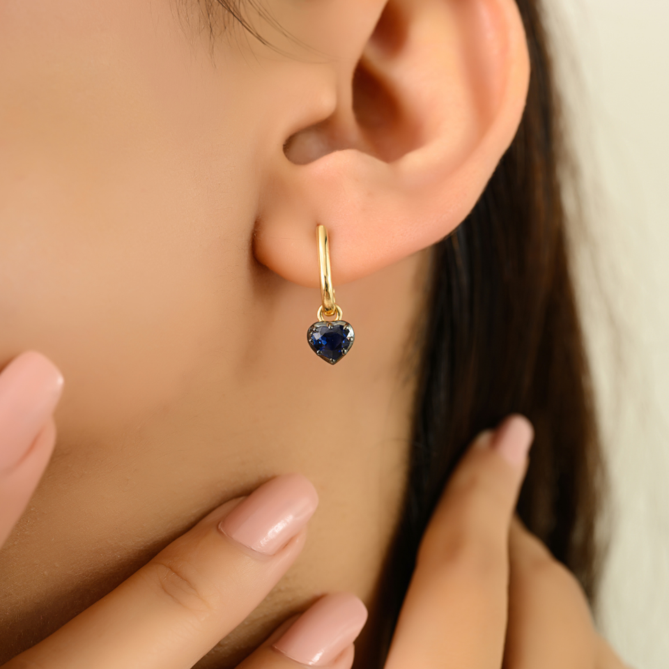 Top Quality 18K Yellow Gold 100% Authentic Blue Sapphire Heart Shape Gemstone Charm Stud Earrings For Women & Girls Daily Wear