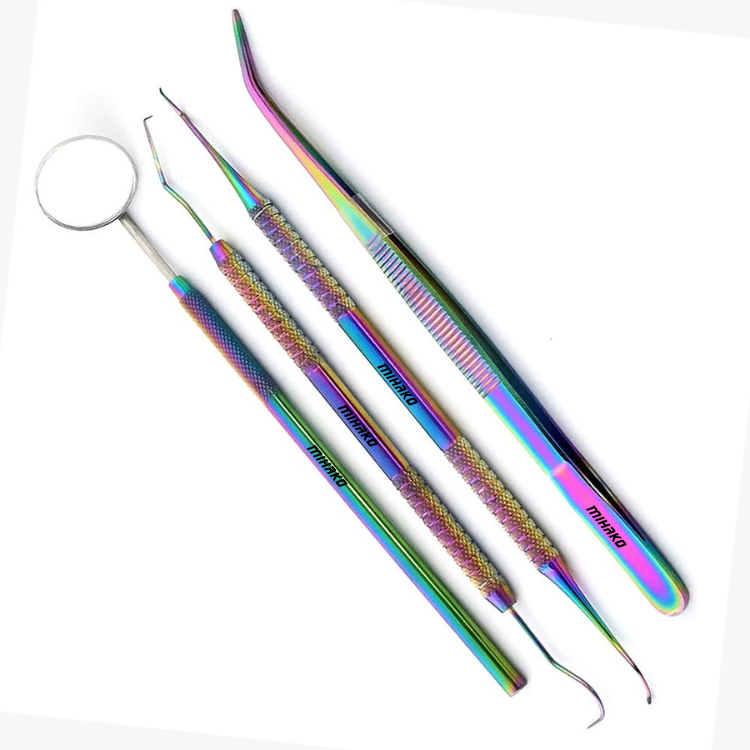 Top Quality 4 Pcs Dental Instrument Kit Teeth Scraper Mouth Mirror Oral Hygiene Probe Scaler Tweezers Stainless Steel Dental Set