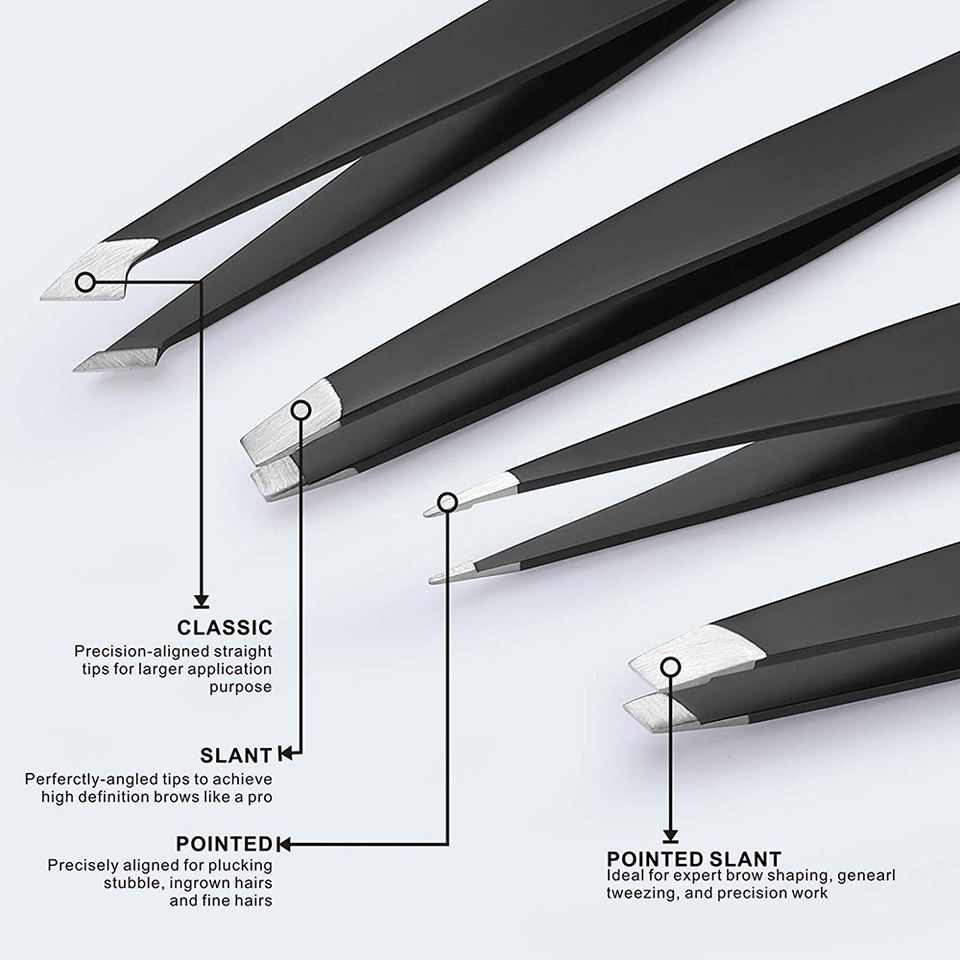 Top Quality 4 Pcs Eyebrow Tweezers Set Hair Removal Makeup Tool Kit With Case Eyebrow Tweezers Kit For Home & Salon Uses