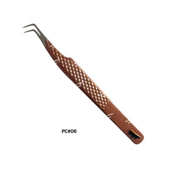 Top Quality 90 Degree Rose Gold Diamond Grip Eyelash Extension Tweezers Silver Tip Pointed Custom Logo False Extension NQLASH
