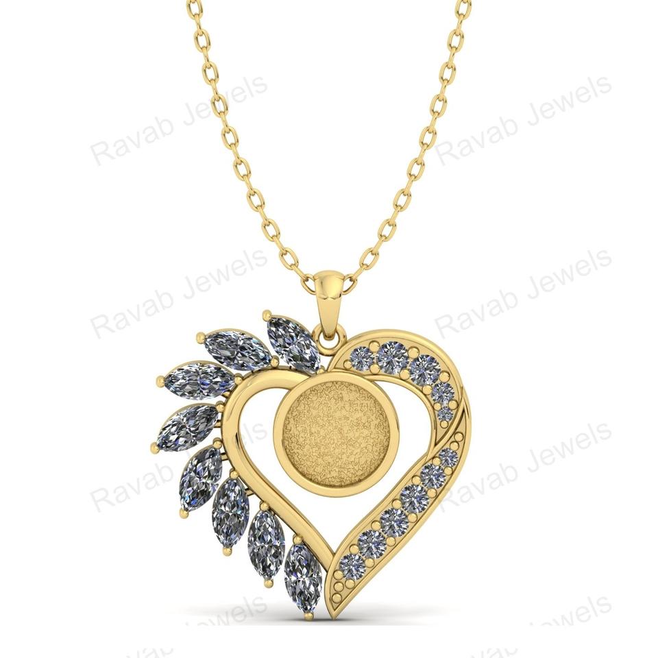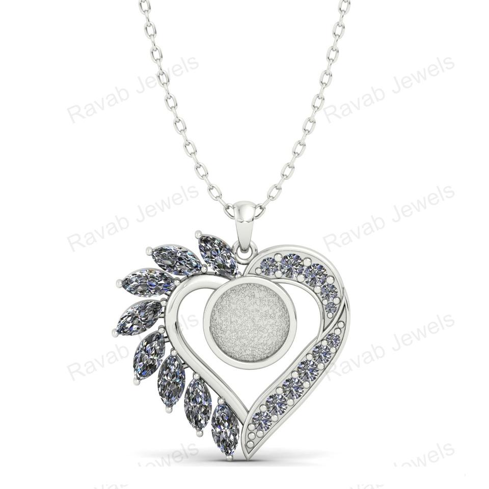 Top Quality 925 Sterling Silver Heart Pendant Necklace Women with Zircon 25mm Simple Mounting Handmade India Export Jewelry Gift