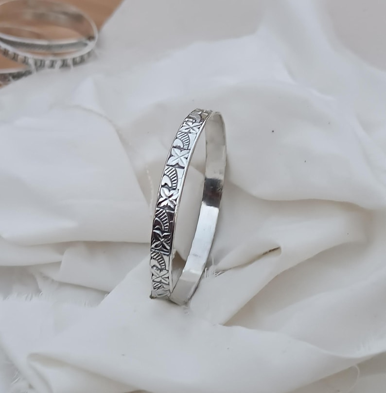 Top Quality 925 Sterling Silver Plated Texture Vintage Bahamian Bangle Bracelet For Women Fashion Jewelry Wholesale Suppliers