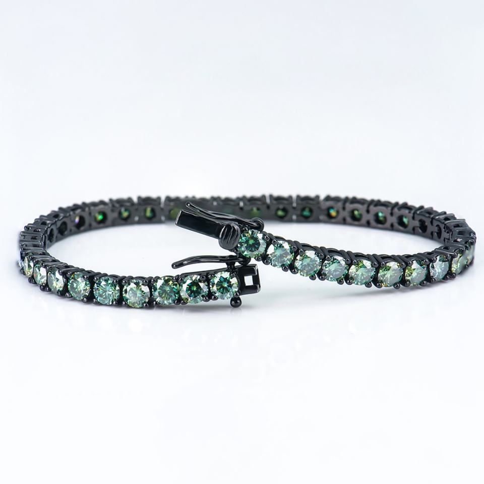 High Quality Brilliant Green Moissanite Tennis Bracelet 4mm/7in 925 Sterling Silver Rhodium Plated Black Gold Color Gift Party