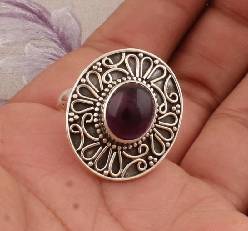 Top Quality Amethyst Gemstone Ring Oval Purple Stone 925 Sterling Silver Middle Finger Ring Handmade Gift for Her