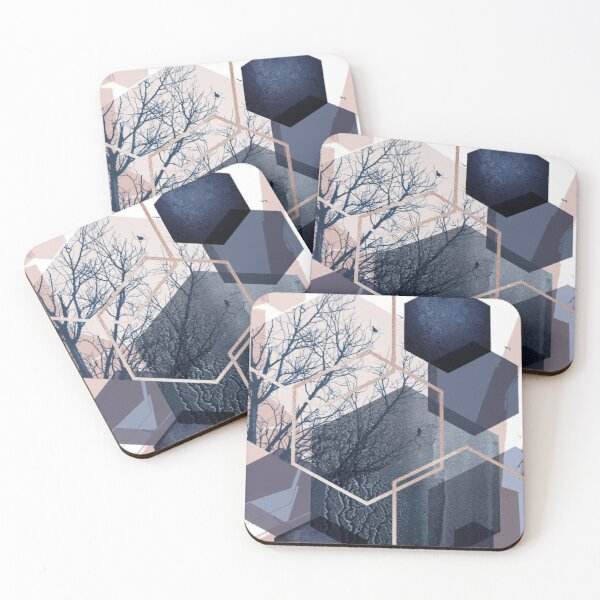 Top Quality Anti Skid Coasters Cup Coaster Set for Bar Kitchen Home Printed Wood Non Slip Drink Coasters with Holder Pcs at SCI