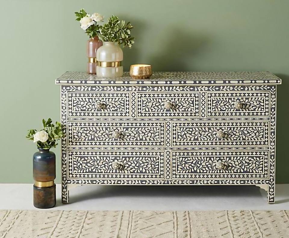 Bone Inlay Chest of Drawers Handcrafted Elegant Storage Solution Unique Decorative Design to Elevate Your Home Decor