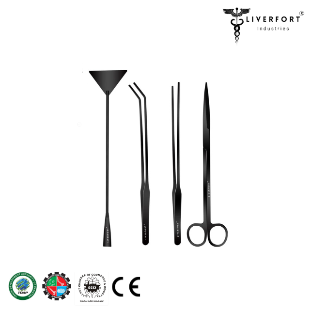 Product Name:4 Pcs Black Aquarium Tools Straight,Crvd Tweezers Scissor Spatula