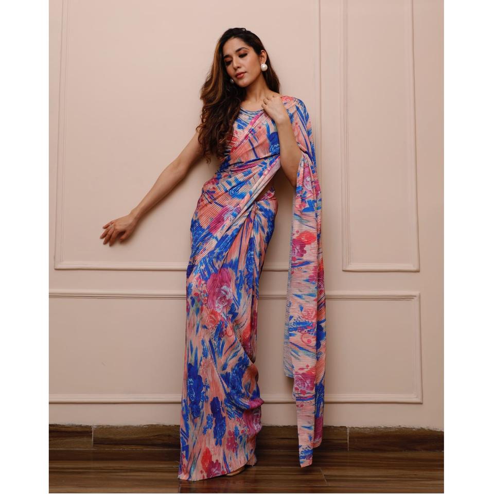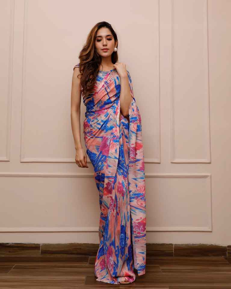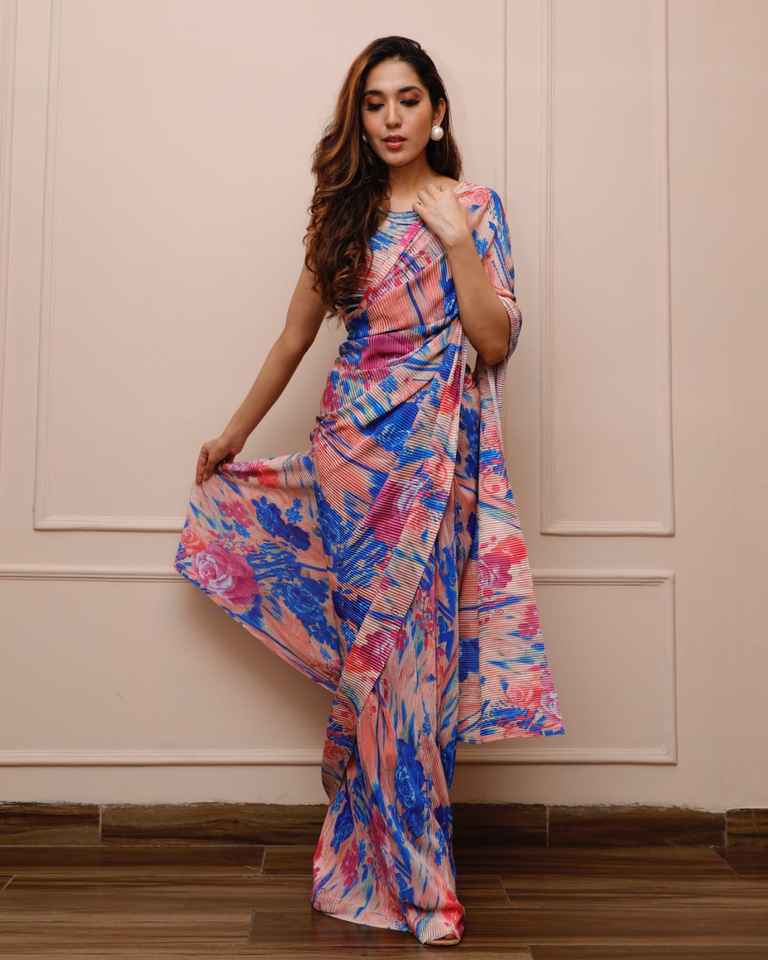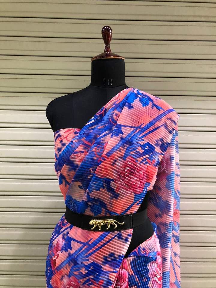 Work:Printed Saree With Crushed Printed Blouse