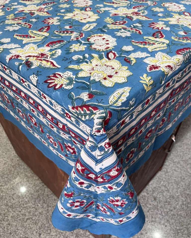 Top Quality Beautiful Handblock Printed Cotton Tablecloth OEM Tablecover for Home Party Banquet Floral Printed Bedding Cloth