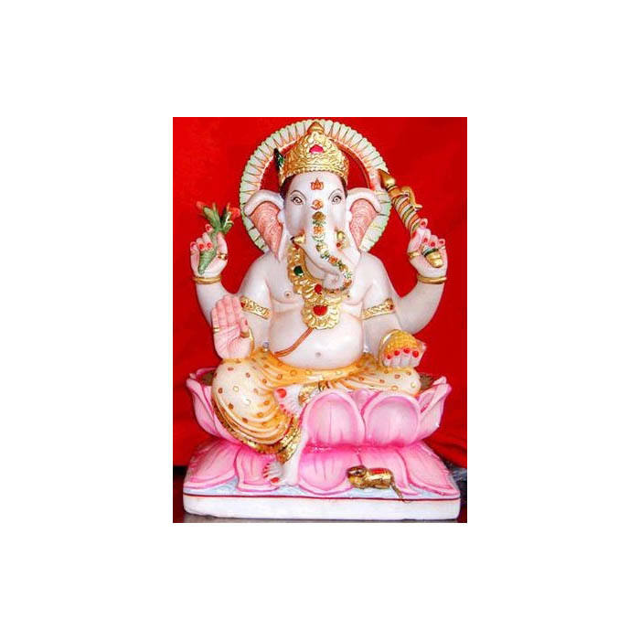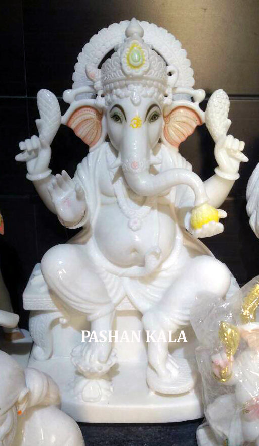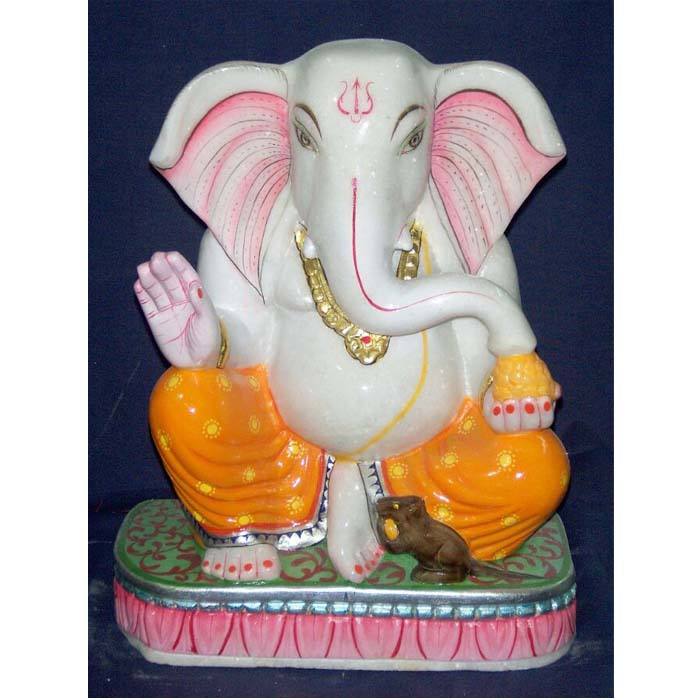 Top Quality Beautiful Handmade White Marble Ganesh Ji Statue With Blessing Hand Sitting Position With Mouse For Home Decoration