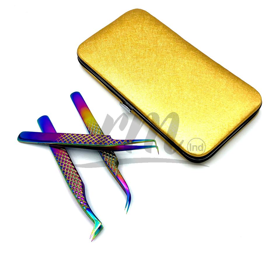 Top Quality Best Product Eyelash Tweezer Diamond Grip Multi Color Eyelash Tweezers And Light Yellow Color Magnetic Case Packing