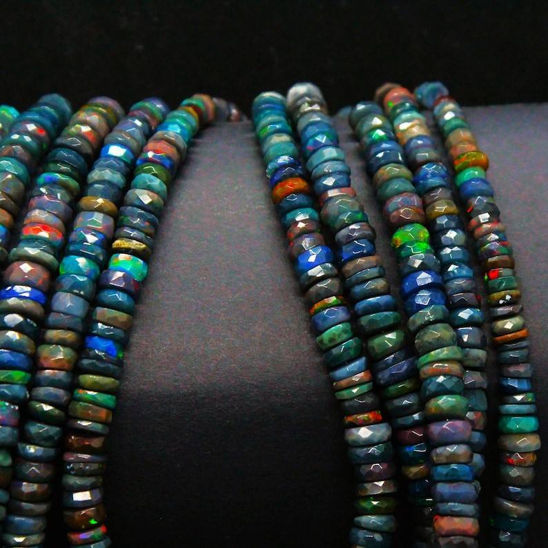 Product name:Black Ethiopian Opal Faceted Heishi Shape Beads