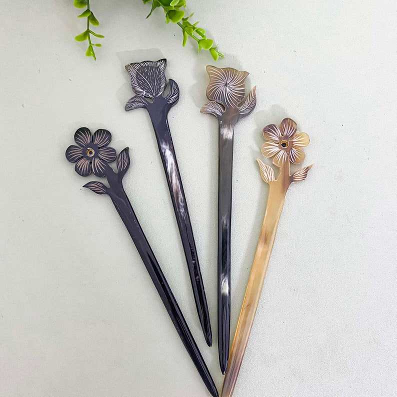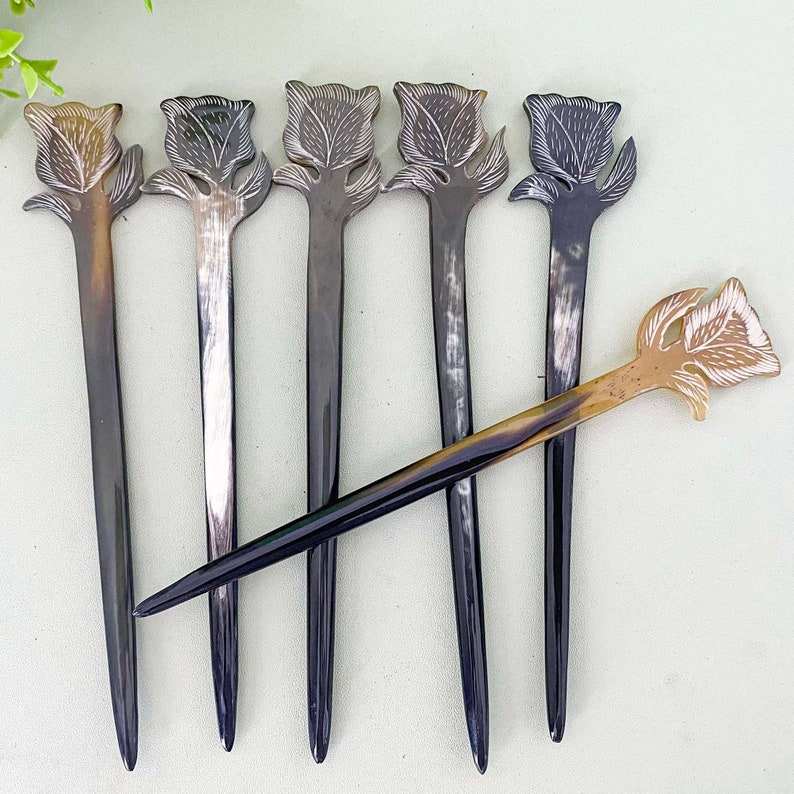 High Quality Silver Craft Buffalo and Cow Bone Stick for Hair Clip Carved Technique