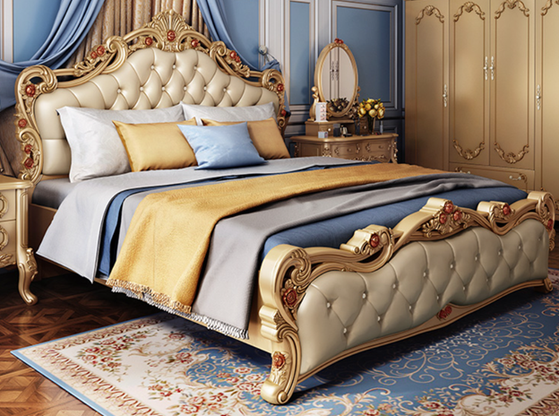Top Quality Classical Solid Wood Bed Antique European Style Luxury Bedroom Furniture Leather Bed