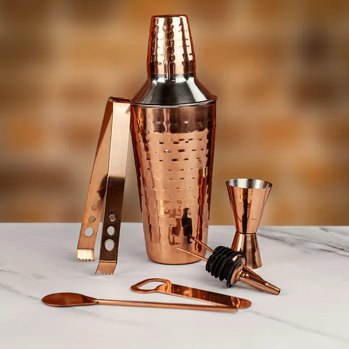 Top Quality Cooper Plated Set of 4 Barware Set Tools Surprise Your Guests with Fancy Drinks by Using All Bartender Tools Kit