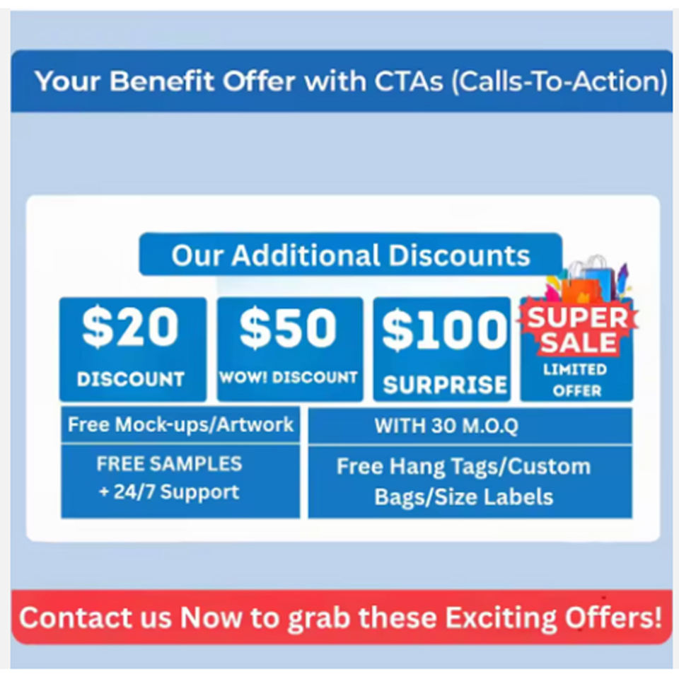 Logo position:Front, back, Left Sleeve, Right Sleeve, lower hem, back neck