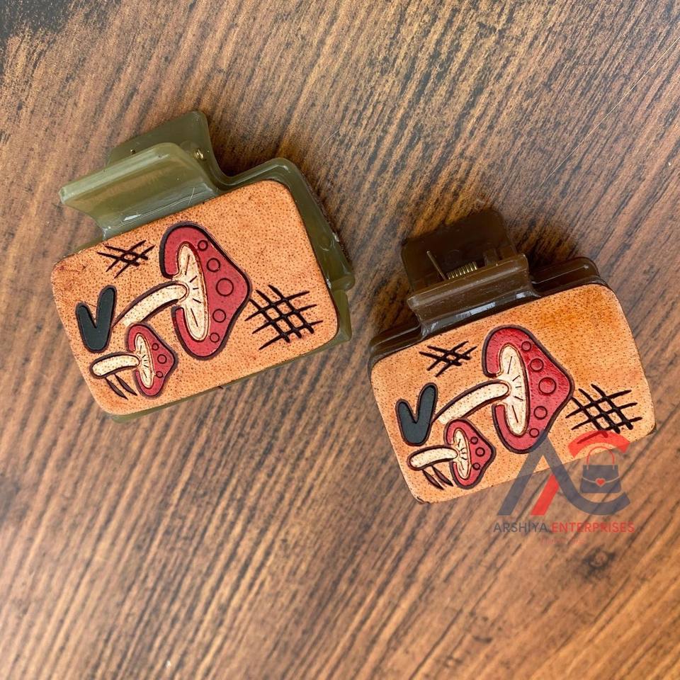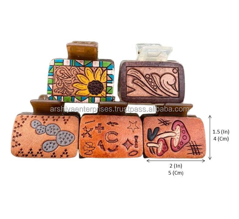 Product name:Hand Tooled Engraved Leather Mini Hair Claw Clips