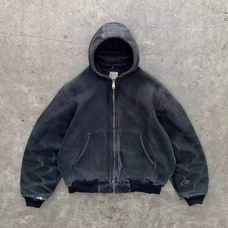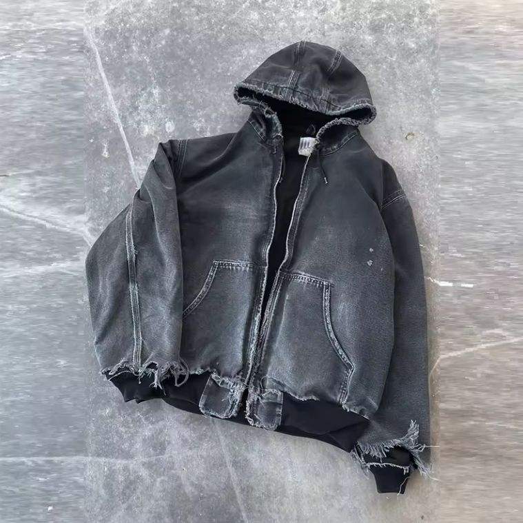 Top Quality Custom Acid Washed Oversized Distressed Sweatshirt Drawstring Hoodie Hooded Zip up Denim Sun Faded Jacket Hoodie