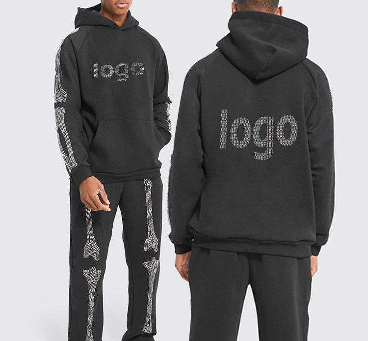 Top Quality Custom Logo Cotton Breathable Rhinestone Tracksuits For Men New Arrival Warm Winter Wear Rhinestone Tracksuit