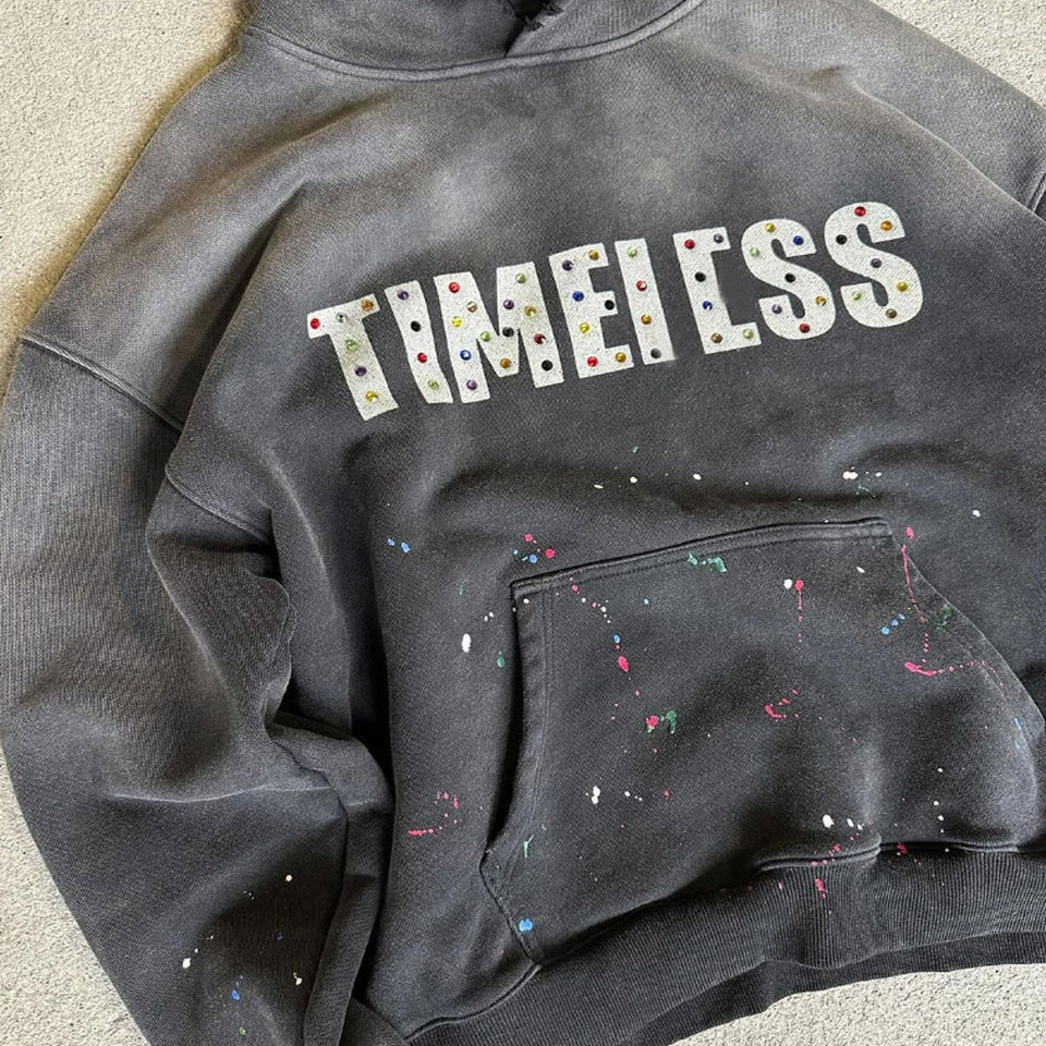 Top Quality Custom Logo Printed Rhinestones Acid Wash Hoodies Heavyweight Drop Shoulder Breathable Pullover Acid Washed Hoodies