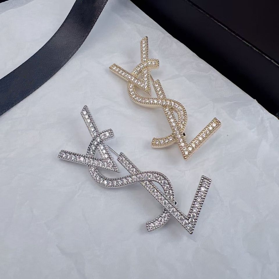 Top Quality Designer Jewelry Pins Broches Luxe Rhinestone Golden Silver Diamond Letter Shaped Brooches Luxury Women