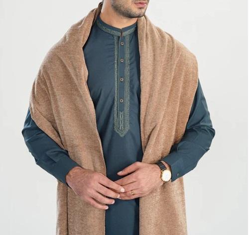 Top Quality Fabric Soft Knitted Wool Warmer Men 100% Cashmere Brown Dyed Knit Long Shawl Wool Shawls Warm Long Length Man Shawl