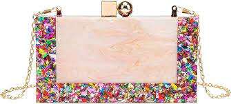 Top Quality Fashion Women Luxury Clutch in Multi Color Resin Art Marble Look Design Epoxy Ladies Bag Box Purse Hand Made