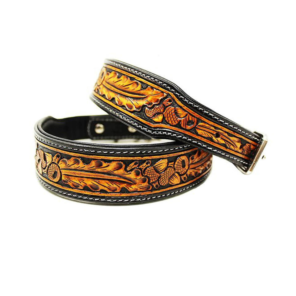 High Quality Full Grain Cow Leather Padded Dog Collar with Western Style Stainless Steel Buckle and D-Ring for Pet Training