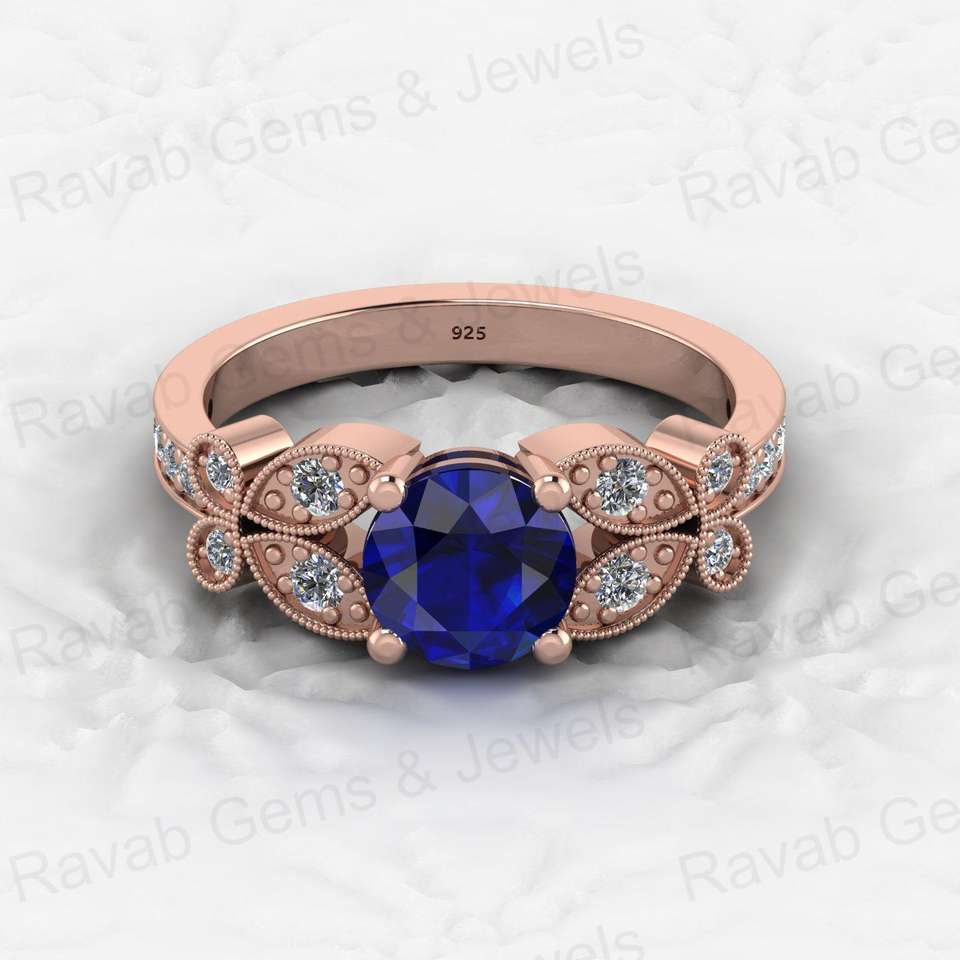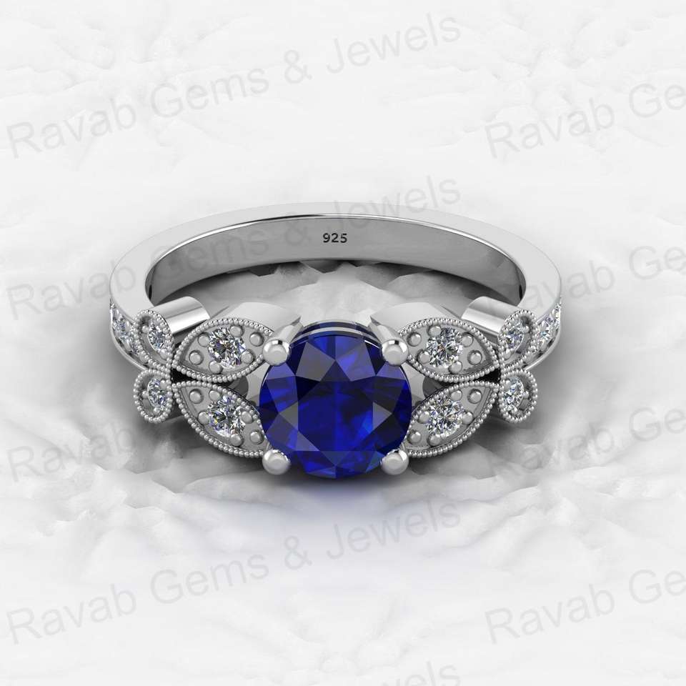 High Quality Genuine 925 Sterling Silver Blue Sapphire Quartz CZ Gold Vermeil Wedding Butterfly Eternity Micro Pave Women's