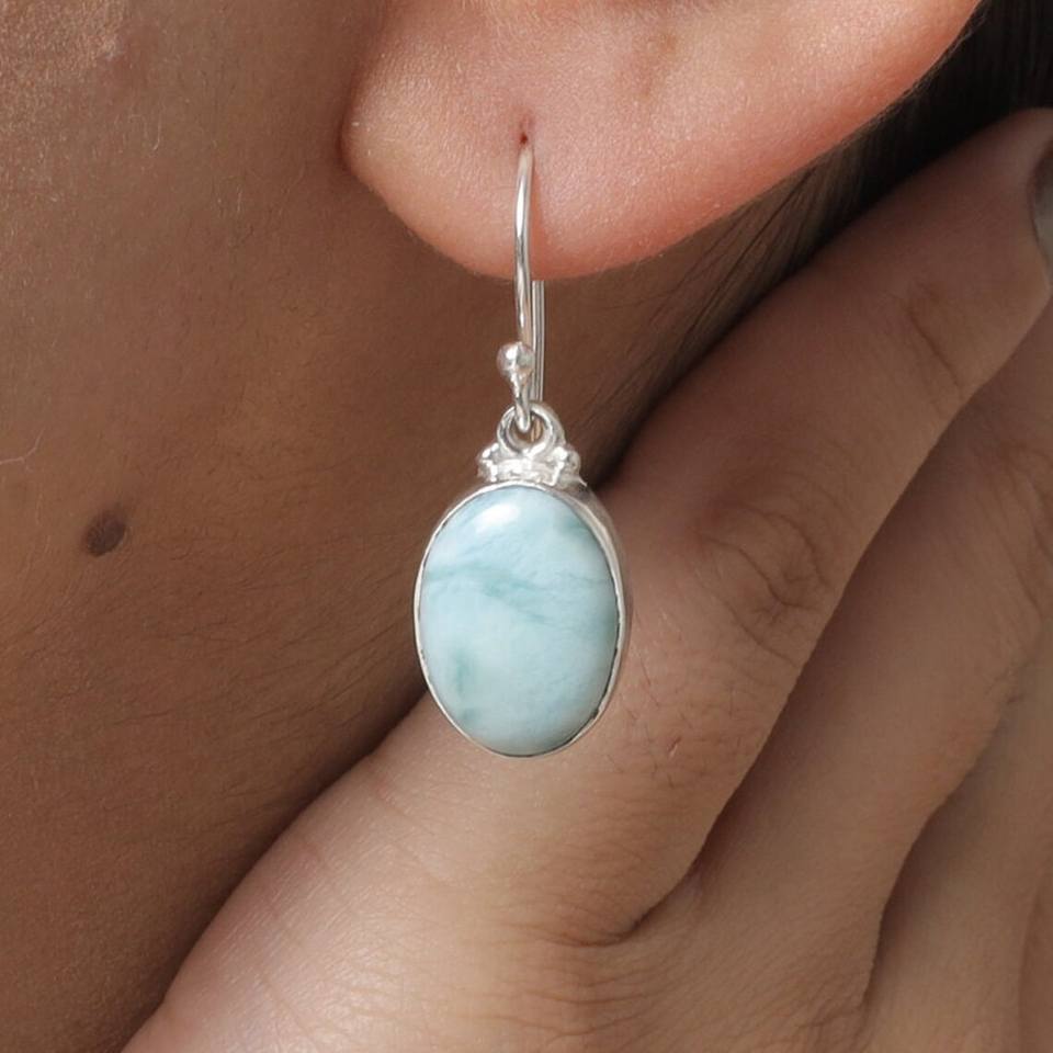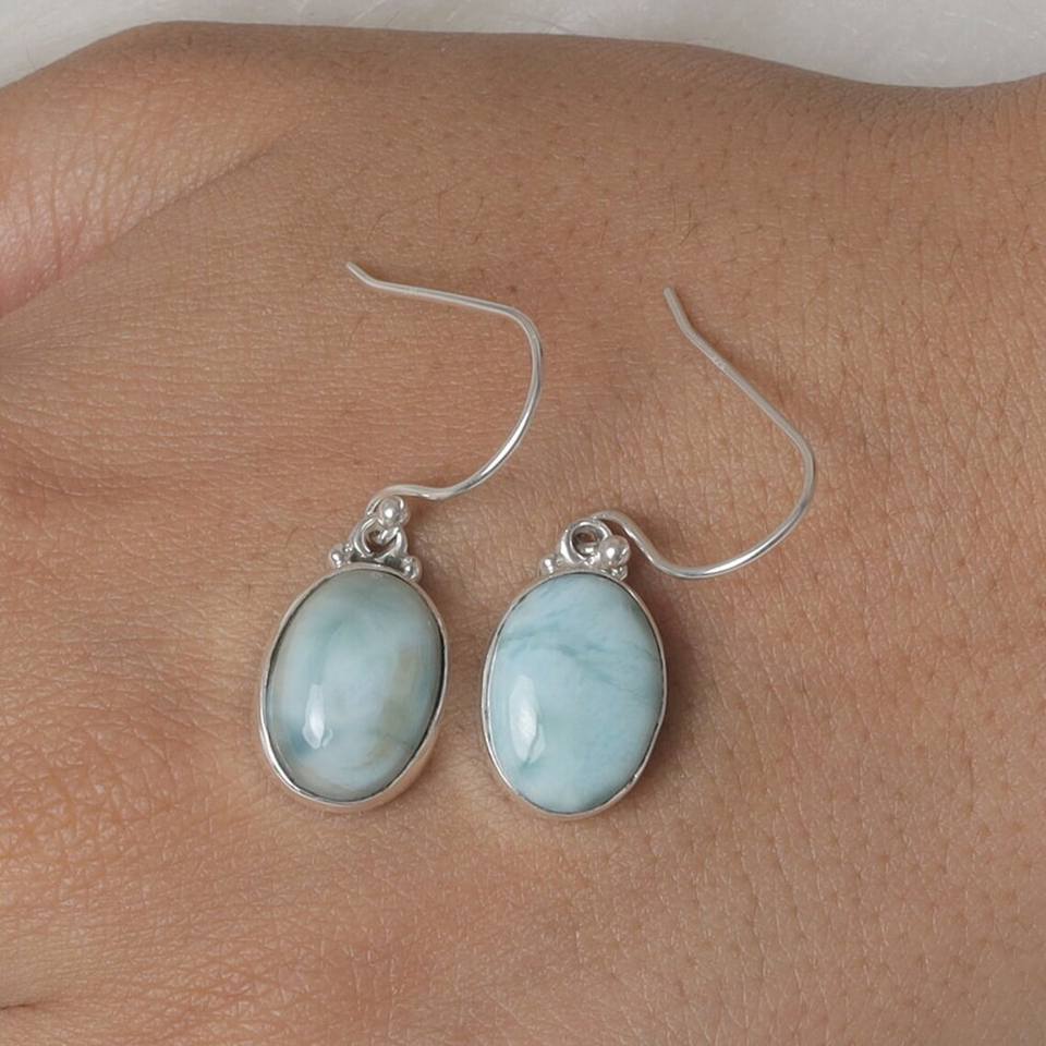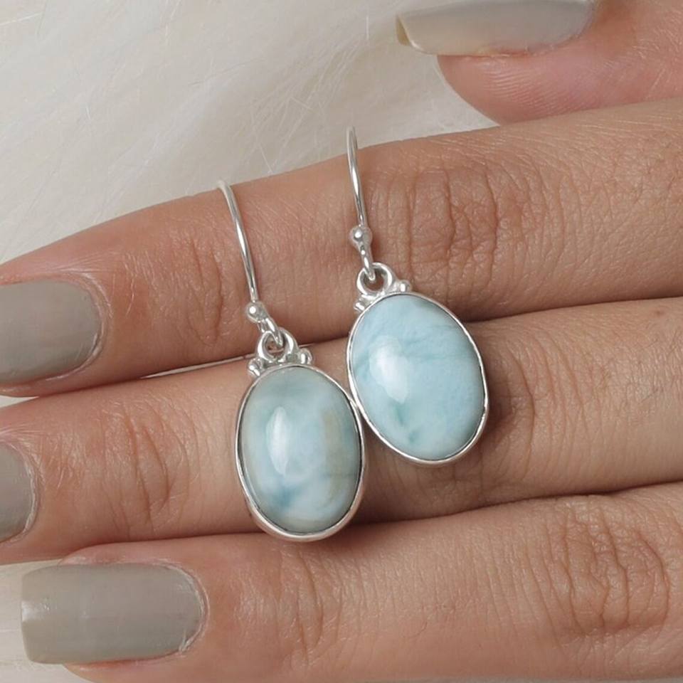 Product Name:Natural Larimar Gemstone Silver Earrings