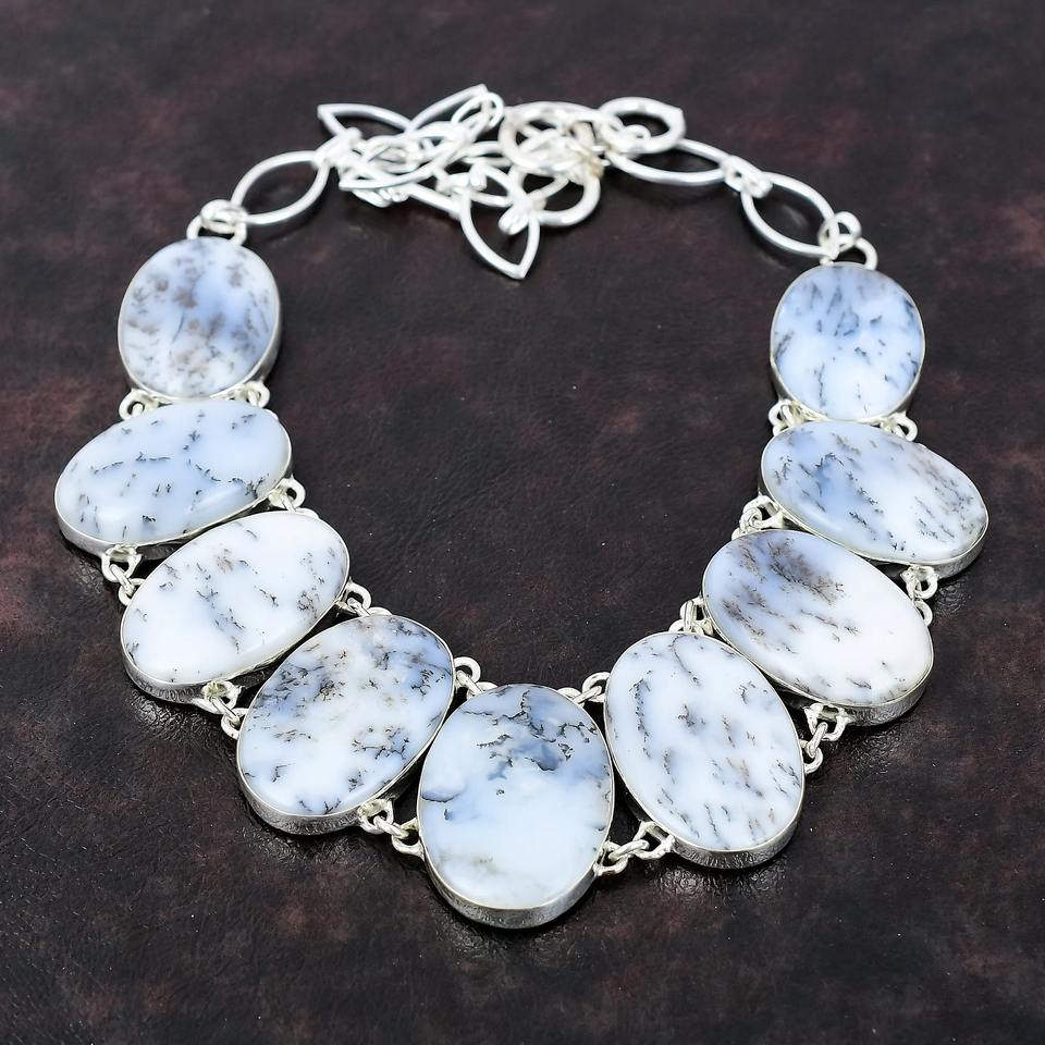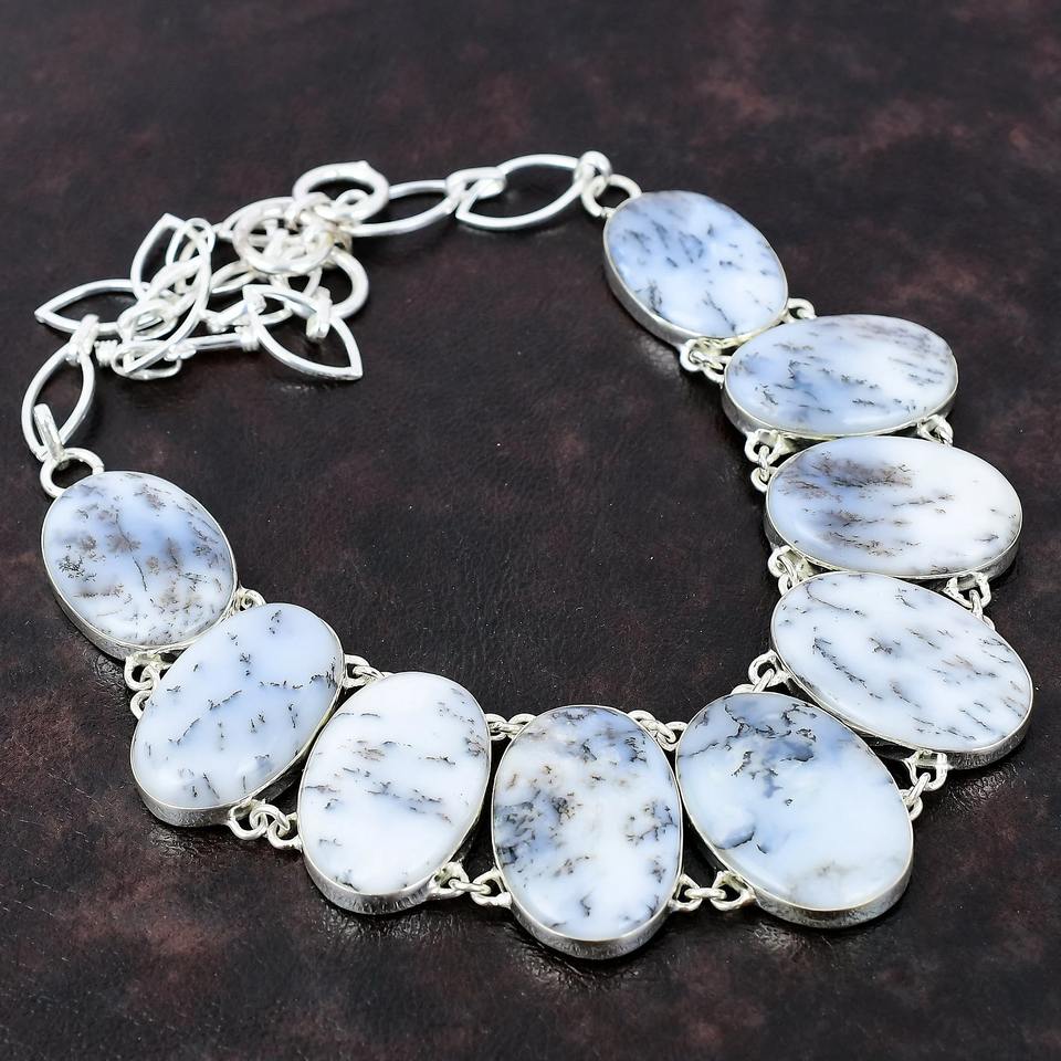 Product Name:Natural Dendrite Agate Gemstone silver bracelet