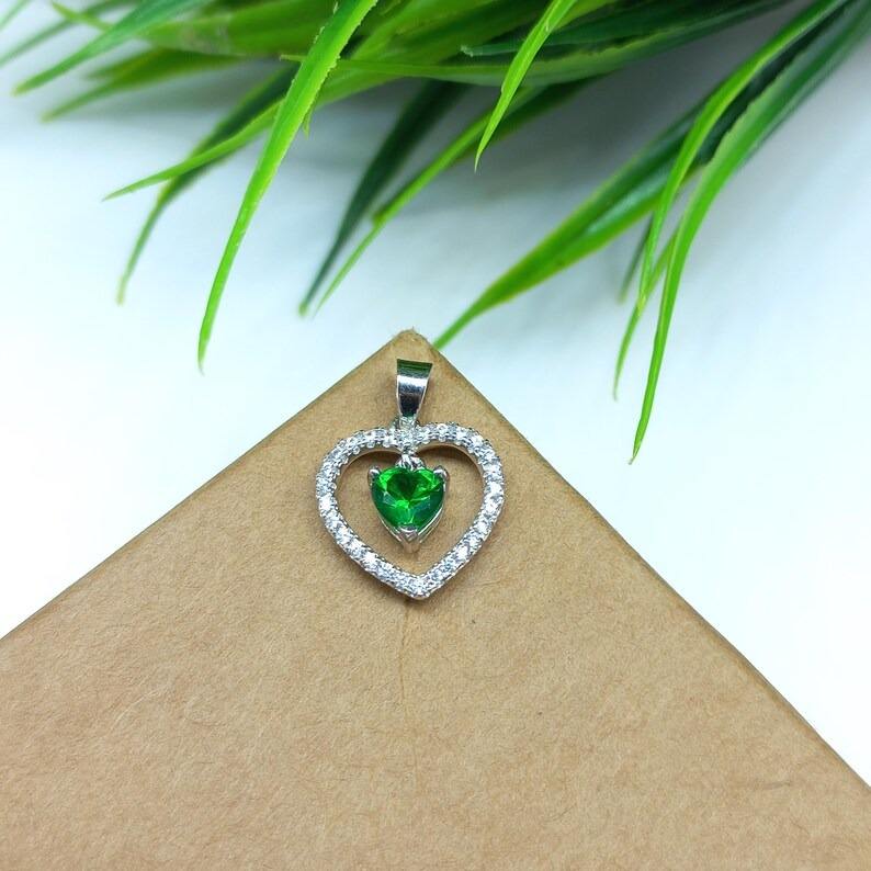 Top Quality Green Cubic Zirconia Heart Halo Pendant 925 Sterling Silver Pendant Elegant Heart Design Jewelry Gift For Women