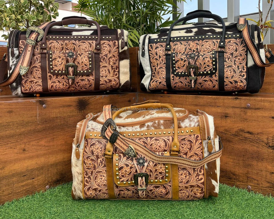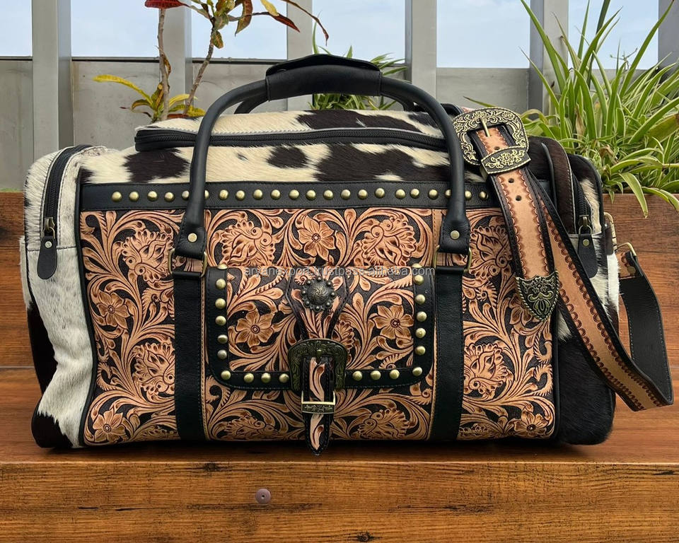 Product Name:Hand Tooled Cowhide Leather Duffle Bag