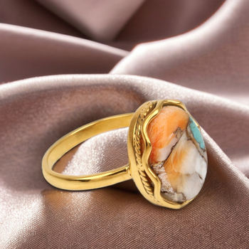 Top Quality Handmade Boho Designer Oval Ring for Women 10x14mm Spiny Oyster Copper Turquoise Gemstone Bezel Real Sterling
