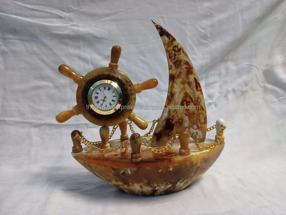 Top Quality Handmade Resin Homedecor Boat with Clock Epoxy Resin Ship for Home and Office Decor Epoxy Resin Nautical Decor