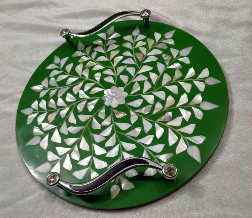 Top Quality Handmade Resin & MOP Inlay Metal Handles Serving & Storage Tray For Ramadan Eid Festive Serving Platter For Tabletop