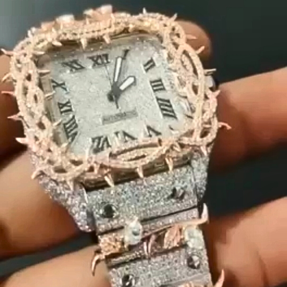 High Quality Hip Hop White Gold Stainless Steel Iced Diamond Charm Watch Invisible Setting 20mm Analog Glass Water Resistant