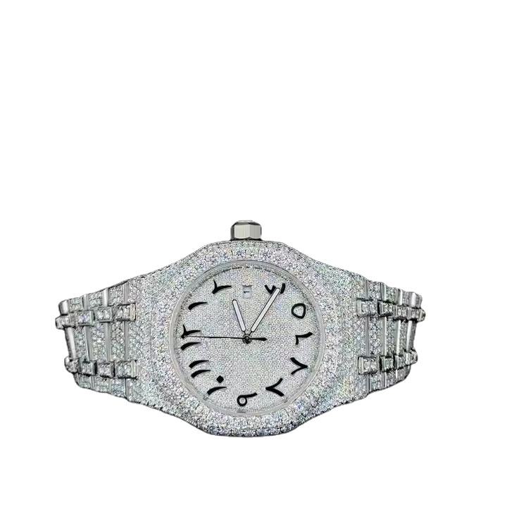 High Quality Hip Hop VVS D Colour Moissanite Automatic Mechanical Luxury Stainless Steel Case Leather Strap Watch
