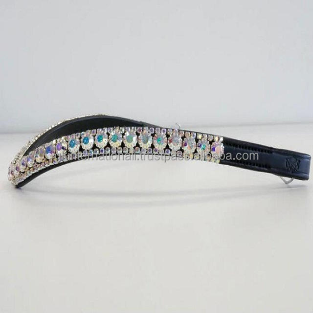 Top Quality Horse Leather With Pearl Bling Crystal Decorative Black and Brown Leather Brow Band in All Customized Sizes