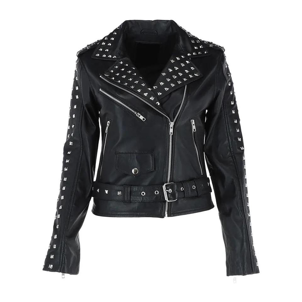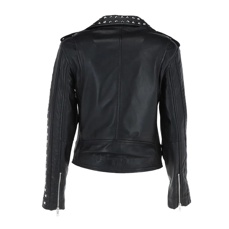 Top Quality Hot Sale Genuine Leather Jacket With Customized Logo Leather Studded Biker Jacket Black