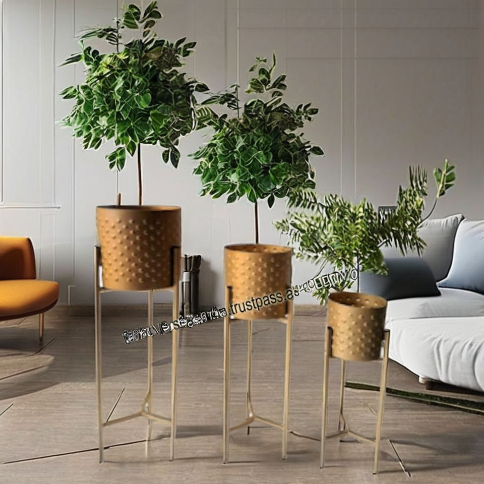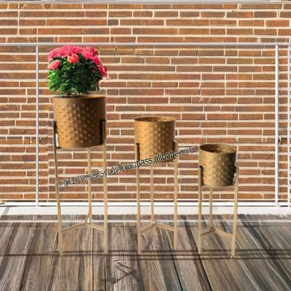 Top Quality Hot Sale Metal Planter Pots for Living Room Office Garden or Balcony Golden Planter With Stand Set of 3