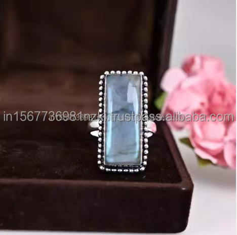 Top Quality Labradorite Ring for Women Rhodium Plated Sterling Silver Handmade Gemstone Ring Gift for Her