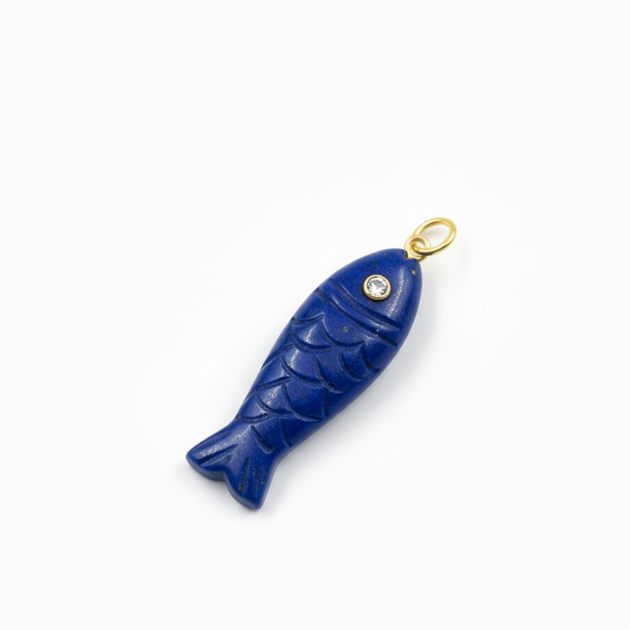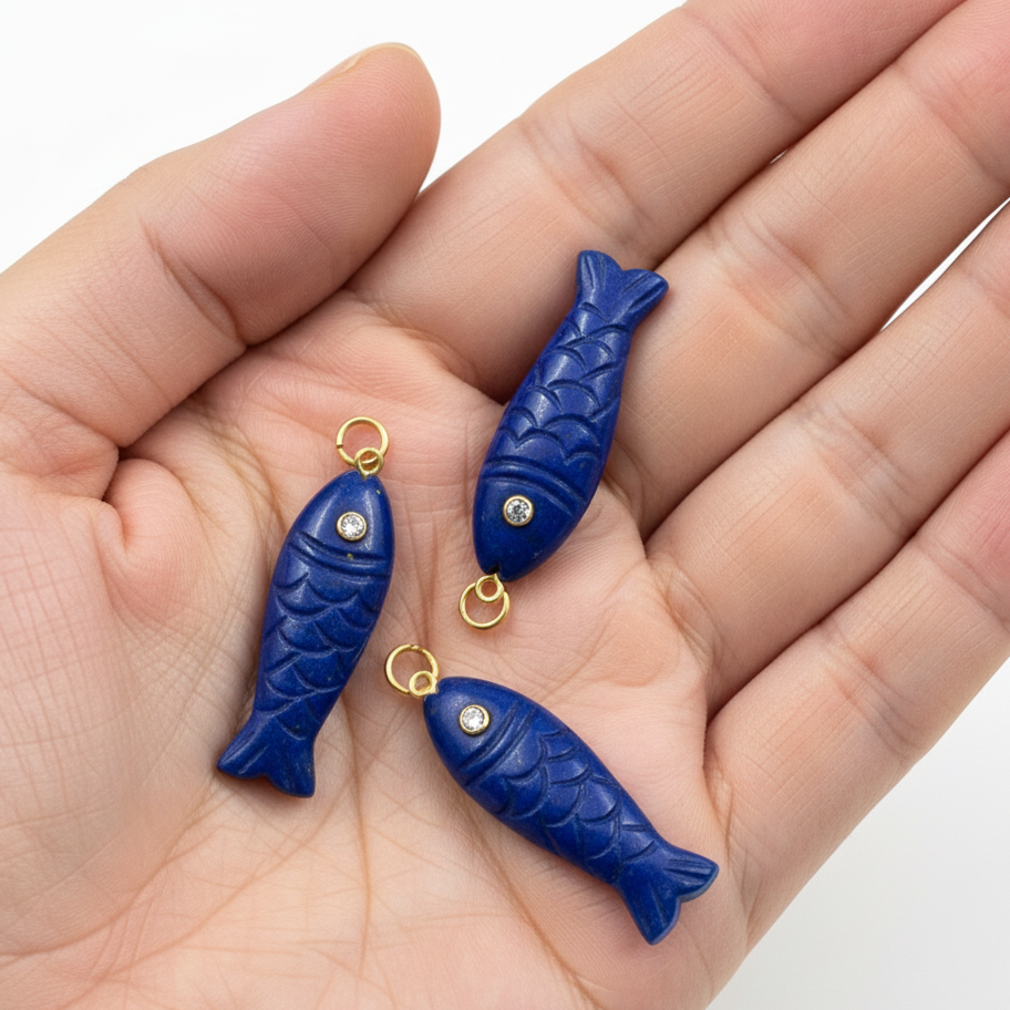 Top Quality Lapis Lazuli Carved Fish Charms 10x30mm Gold Plated Gemstone Pendant Fish Charm Beads for Jewelry Making in Bulk