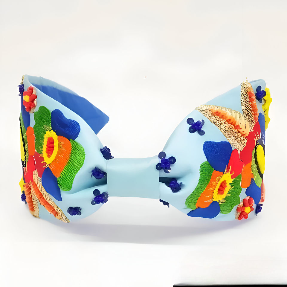 Sky Handmade Hair Accessories with Floral Embroidery Sequin Beaded Detailing Custom Festive Bridal Party Luxury Fashion Headband