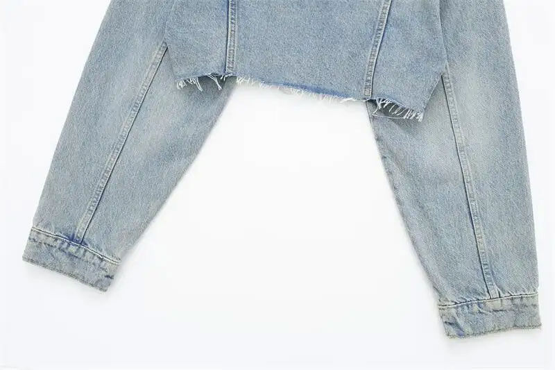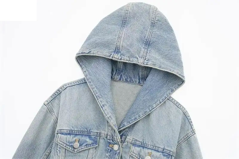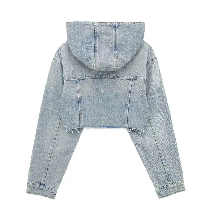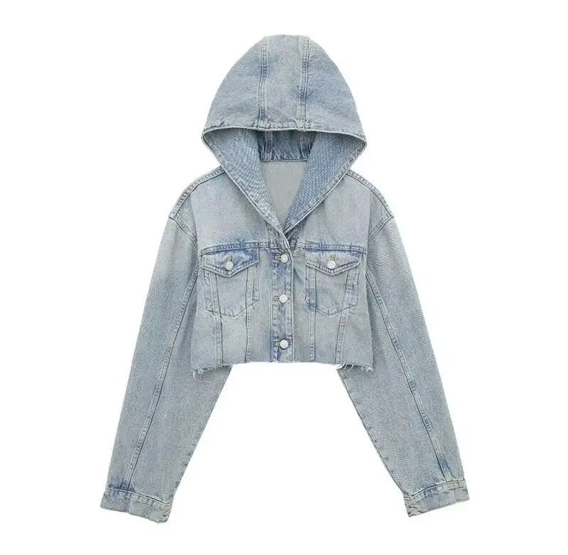 Top Quality Long Sleeve Less Cropped Denim Jackets With Hood Street Wear Fashion Jeans Jackets for Women High Quality