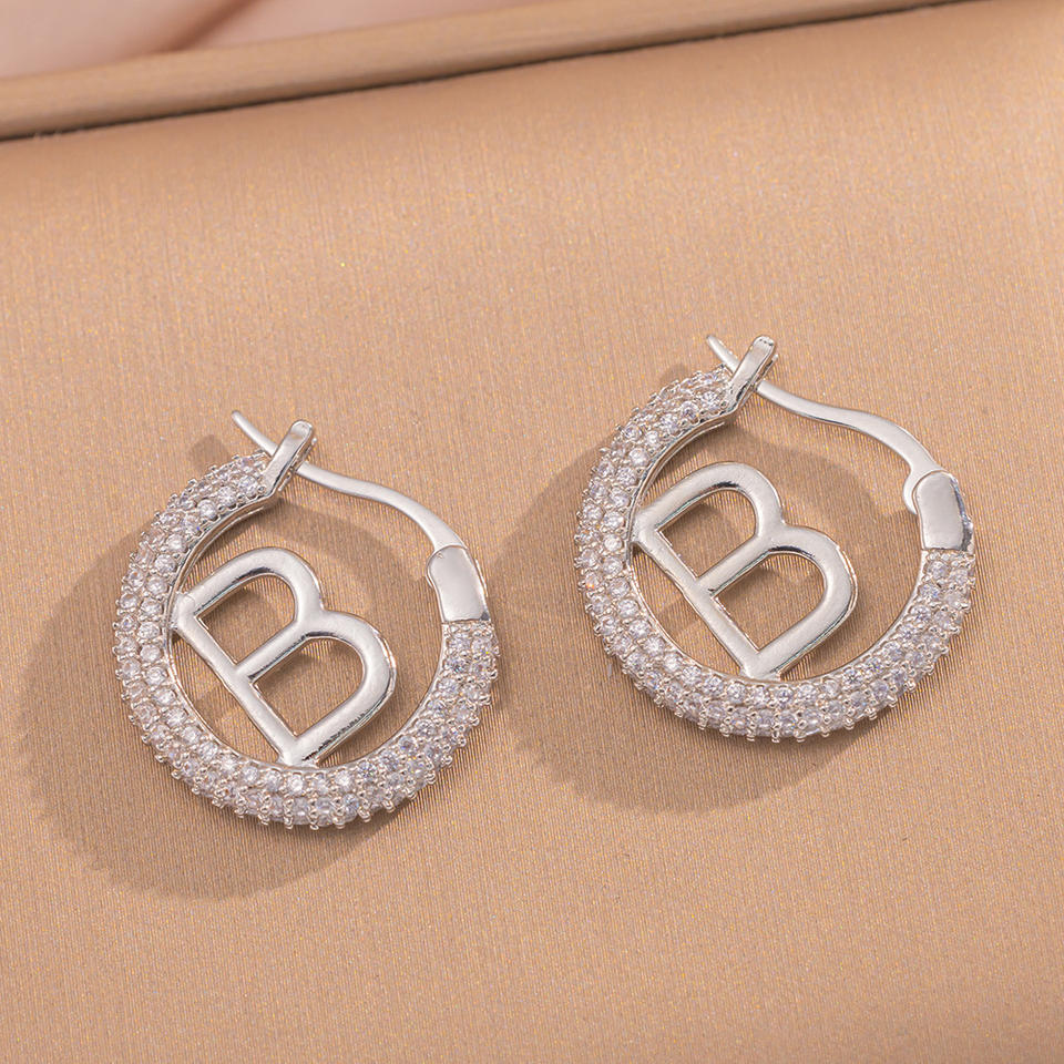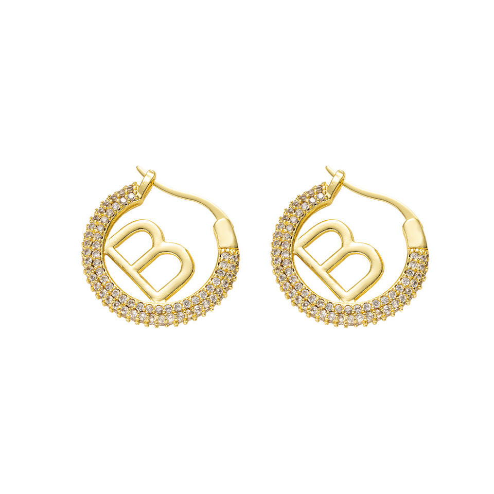 Top Quality Luxury Jewelry Ear Buckle Popular Brands Rhinestone Designer Letter B Hoop Earrings for Women