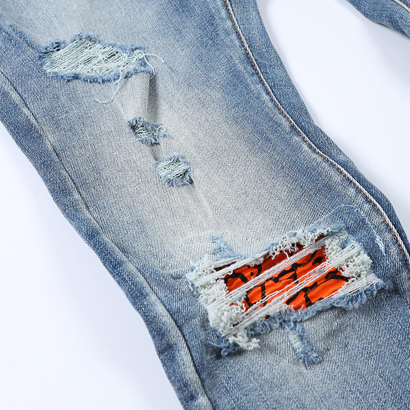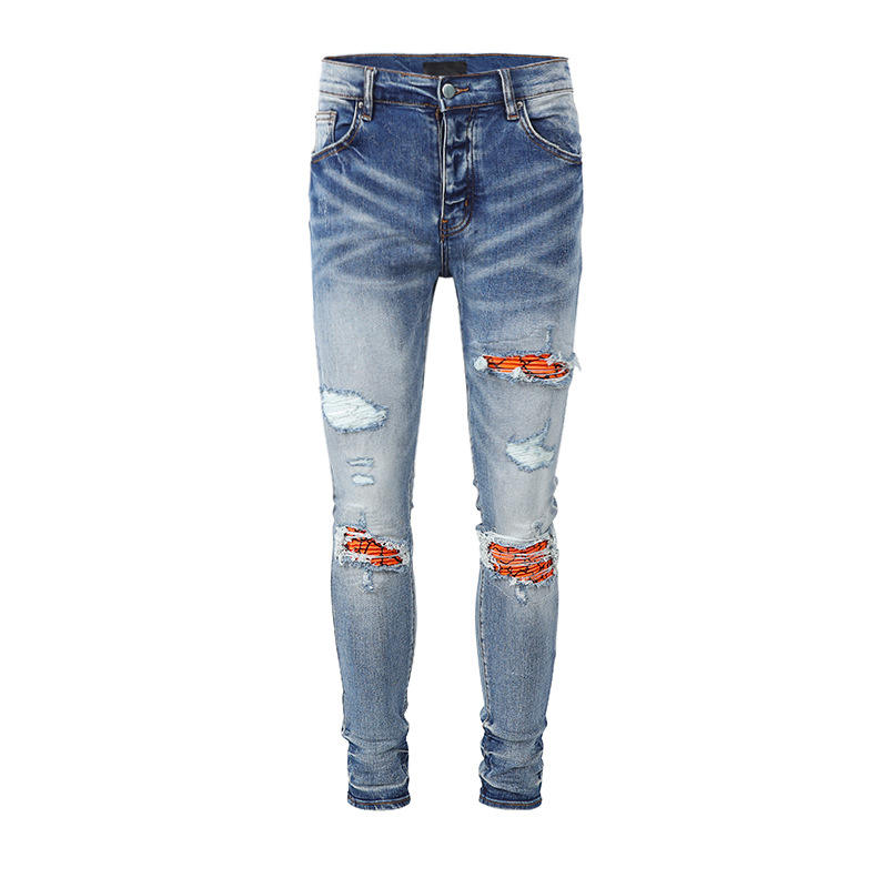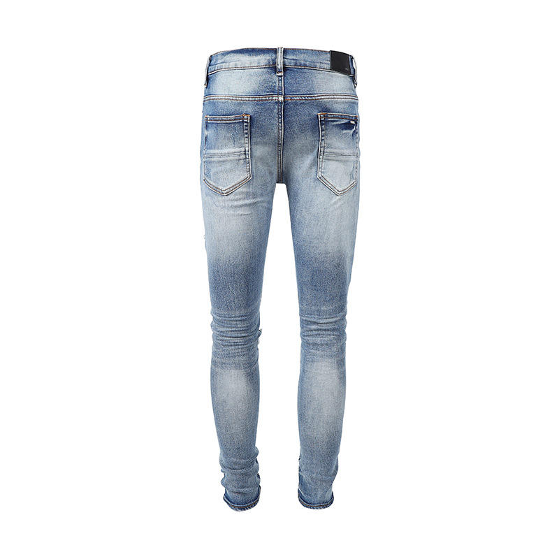 Top Quality Men Fashion Black Pants Washed Ripped Patchwork Custom Printed Stretch Amiry Denim Jeans
