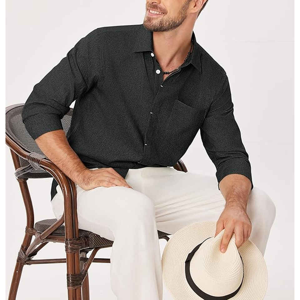 Top Quality Men's Dress Shirt Regular Fit Stretch Stain Shield Button Down Man Shirt Breathable YARN DYED Men's Shirts
