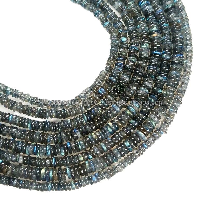 Top Quality Natural Labradorite Smooth Heishi Tyre Beads for Jewelry Making Labradorite Plain Gemstone Beads Strands From India