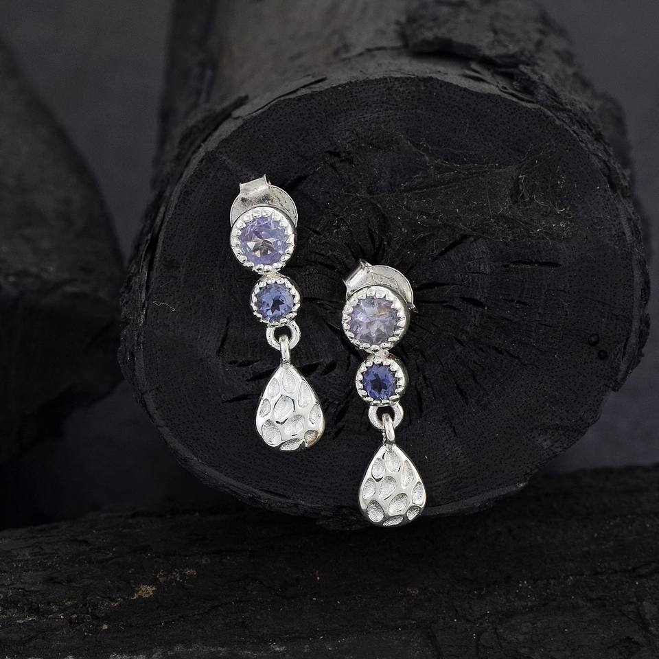 Top Quality Natural Tanzanite Gemstone Drop Dangle Earrings Wholesale Pure 925 Sterling Silver Charm Fashion Party Wear Earrings